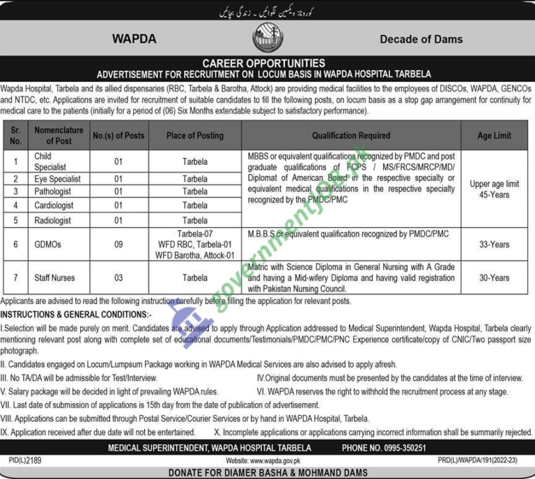 Water and Power Development Authority (Wapda) – Apply now Salary Offer: 25,000 – 120,000 Education: Matric, Nursing Diploma, FCPS, MS, FRCS, …