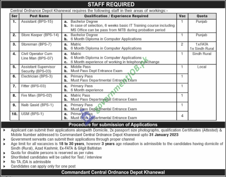 Pakistan Army Ammunition Depot Jobs 2023 – Apply Now Salary Offer: 30,000+ Education: Matric, Bachelor Address: Commandant, Ammunition Depot Okara …